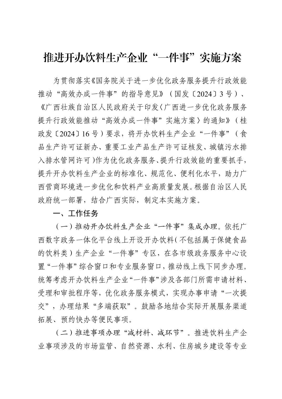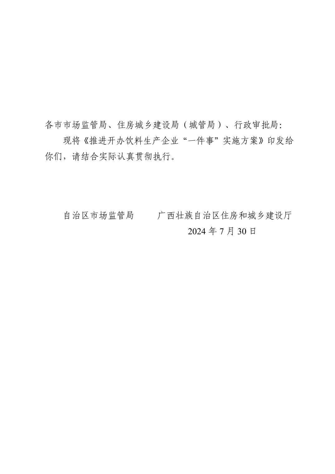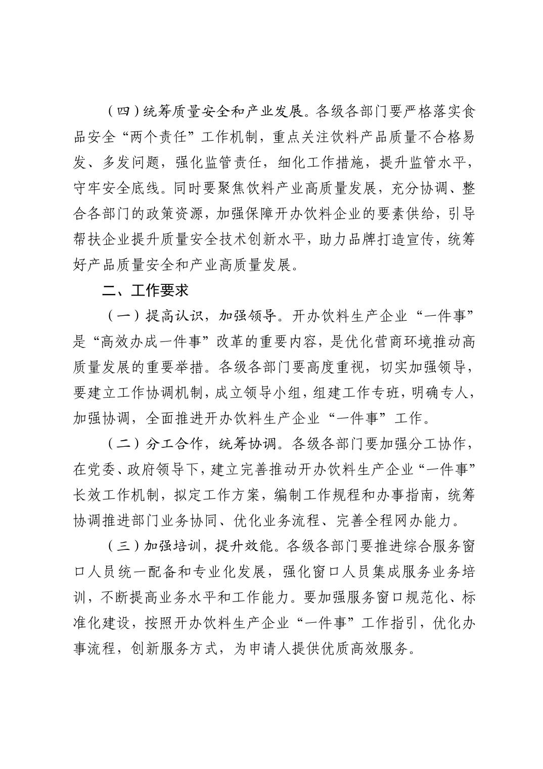 自治区市场监管局等部门关于印发推进开办饮料生产企业“一件事” 实施方案的通知