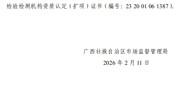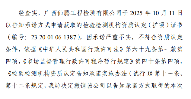 广西壮族自治区市场监督管理局关于撤销广西仙腾工程检测有限公司检验检测机构资质认定扩项证书的通告(2026年第16期)